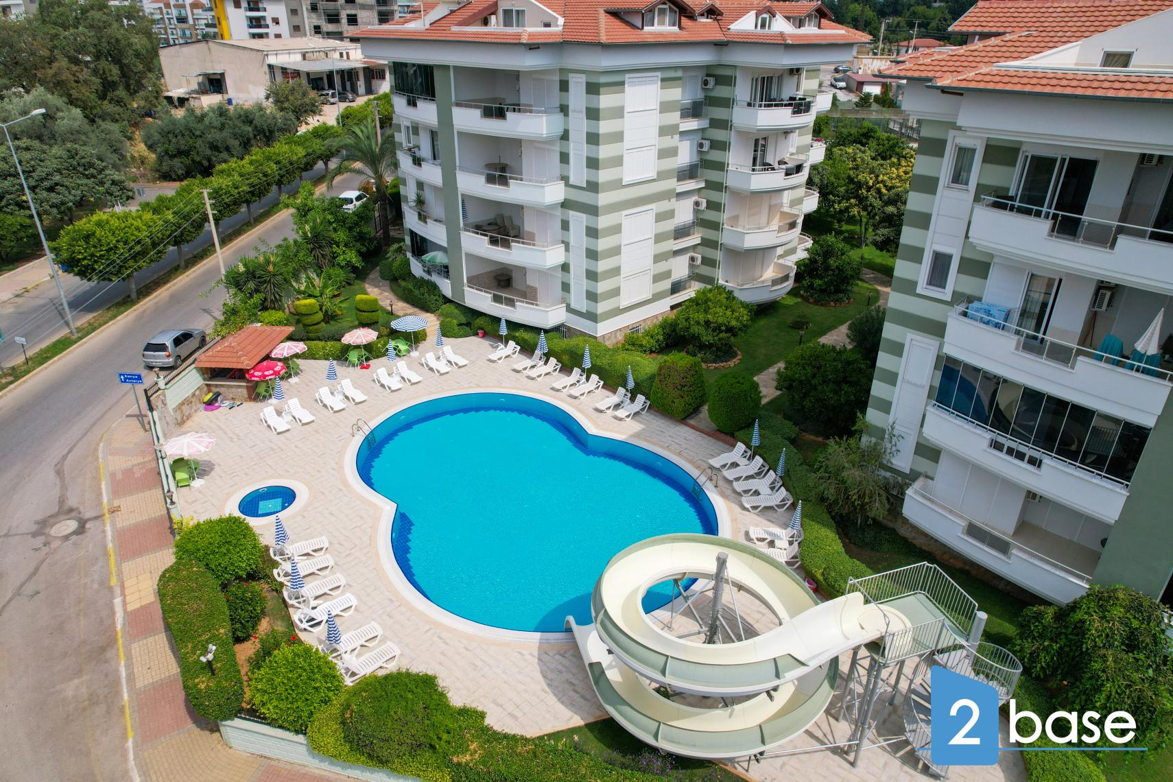 Me-Ba Portakal Garden offers two five-storey buildings with a communal pool, waterslide and poolside bar, located 15 minutes on foot from Alanya’s beaches and city centre. The 1000 sqm complex includes lifts, security and a backup generator.