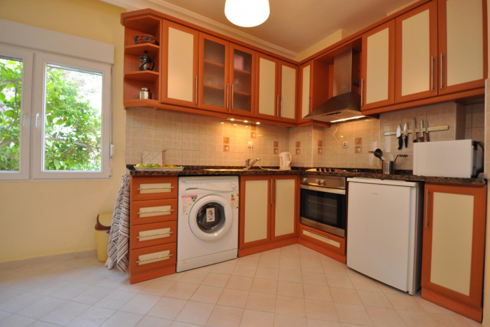 Klimatyzacja do ogrzewania lub chłodzenia salonu.. Ładna, przestronna i zachęcająca łazienka.. Oddzielna kuchnia z piekarnikiem, płytą grzewczą, lodówką i zmywarką.. Dom wakacyjny z zachęcającymi balkonami na ciepłe letnie noce..