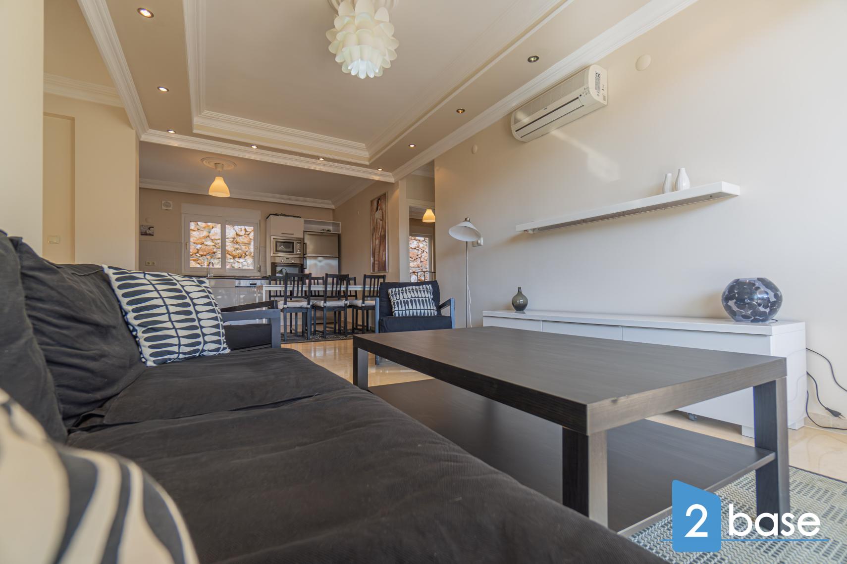 Klima uređaj za grejanje ili hlađenje dnevne sobe i spavaćih soba.. Američka kuhinja sa rernom, pločom za kuvanje, frižiderom i mašinom za pranje sudova.. Kuća je kompletno nameštena u sjajnom skandinavskom stilu.. Namešten balkon sa stolom i stolicama..