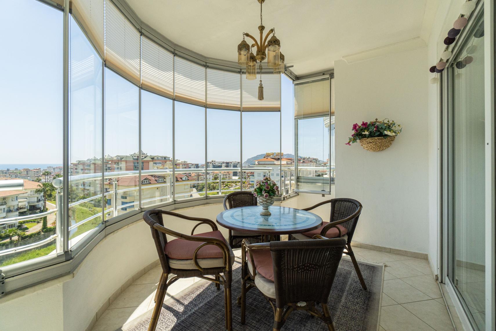 Komplexet ligger på en lugn bostadsgata, 10 minuters promenad från Alanyas centrum. På 2 minuter når du lokala affärer, medan närmaste strand ligger 15 minuter bort till fots. Området har en veckovis bondemarknad och ytterligare lekplatser. Gazipaşa-Alanya flygplats ligger 40 minuters bilresa bort. Från norra sidan av komplexet erbjuds bergsutsikt, medan de övre våningarna ger delvis utsikt över staden och havet.